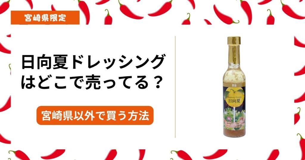 引っ越す前やお土産でもらったときに食べた日向夏ドレッシングの味が忘れられない! そんなあなたのために宮崎県以外で日向夏ドレッシングを買う方法をご紹介します。 この記事を読めば、「日向夏ドレッシングがどこで売ってる?」という疑問が解決し、あ... -