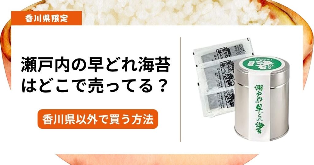 引っ越す前やお土産でもらったときに食べた瀬戸内の早どれ海苔の味が忘れられない! そんなあなたのために香川県以外で瀬戸内の早どれ海苔を買う方法をご紹介します。 この記事を読めば、「瀬戸内の早どれ海苔がどこで売ってる?」という疑問が解決し、あ... -
