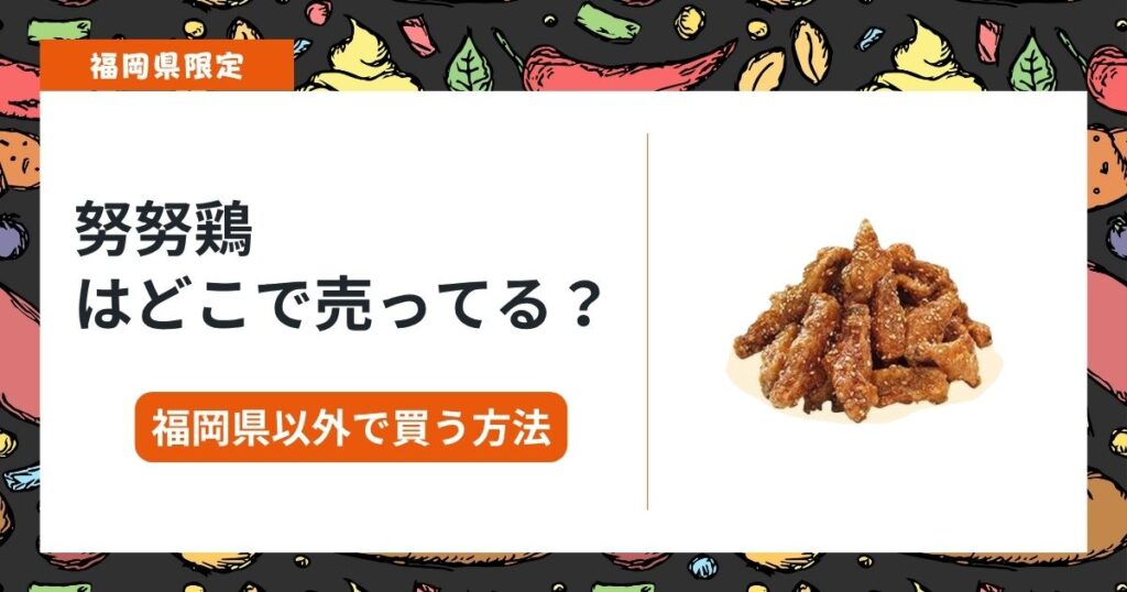 引っ越す前やお土産でもらったときに食べた努努鶏の味が忘れられない! そんなあなたのために福岡県以外で努努鶏を買う方法をご紹介します。 この記事を読めば、「努努鶏がどこで売ってる?」という疑問が解決し、あの味をもう一度楽しむことができます。... -