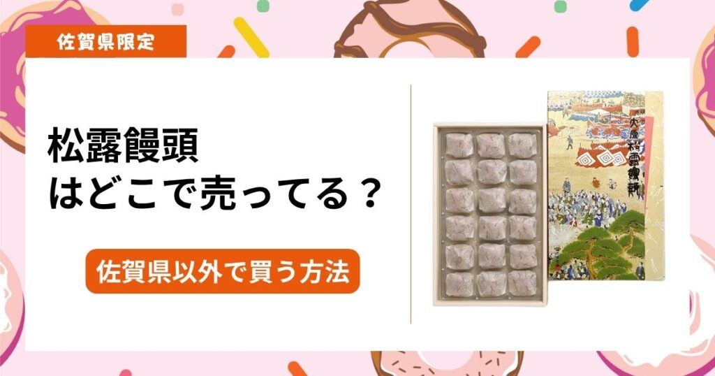 引っ越す前やお土産でもらったときに食べた松露饅頭の味が忘れられない! そんなあなたのために佐賀県以外で松露饅頭を買う方法をご紹介します。 この記事を読めば、「松露饅頭がどこで売ってる?」という疑問が解決し、あの味をもう一度楽しむことができ... -